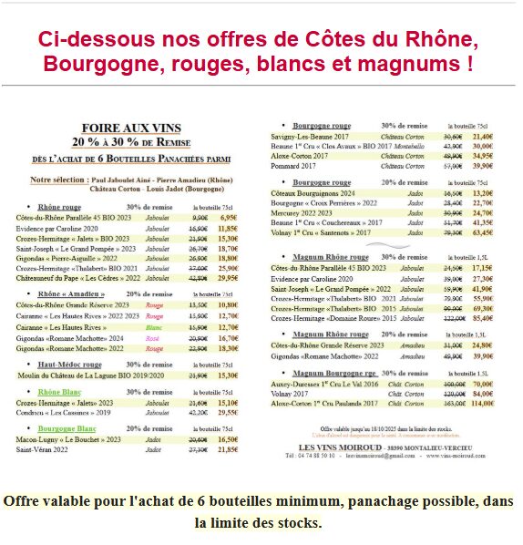 C’est le moment tant attendu par les amateurs de bons crus ! Profitez de notre Foire aux Vins 2025 pour découvrir et savourer une sélection exclusive à prix réduit.